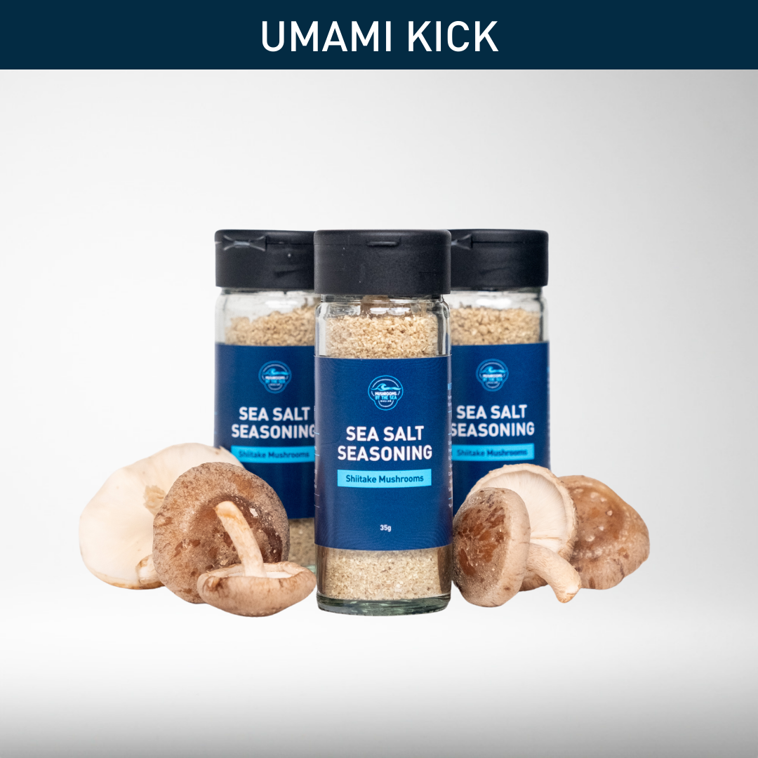 Add delicious flavour to your meals with our Sea Salt Seasoning! Made with 80% high-quality sea salt and 20% dehydrated shiitake mushrooms from our farm, this seasoning gives a tasty umami kick to all your dishes.